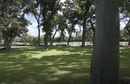 Intimate cabin on Spring Creek, perfect for relaxing getaways! Cool off under sprawling pecan trees, while taking in the view of Spring Creek. Outdoor amenities include grill, washer pits, dance floor, and bar.
