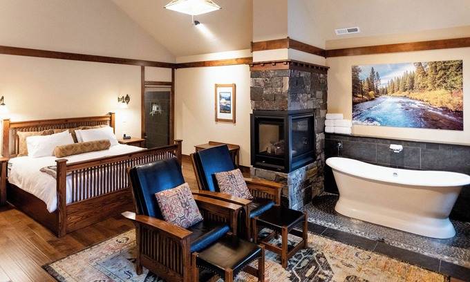 FivePine Lodge & Cabins - Serenity Cabin is located in Sisters. FivePine Lodge & Cabins - Serenity Cabin provides accommodation, featuring Wellness Facilities, Fireplace/Heating, Child Friendly, among other amenities. This Cabin features Wellness Facilities, Fireplace/Heating, Child Friendly, to make your stay a comfortable one.