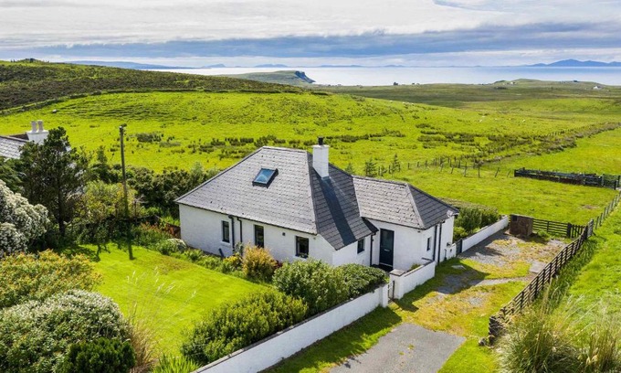 Providing a garden, Fladda Chuain Holiday Home provides accommodations in Kilmuir. Housed in a building dating from 1952, this vacation home features free Wifi and free private parking. Outdoor seating is also available at the vacation home. Featuring sea views, this vacation home also comes with a satellite flat-screen TV, a well-equipped kitchen with a dishwasher, an oven, and a microwave, as well as 2 bathrooms with a bath and a hair dryer. There's also a seating area and a fireplace. Benbecula Airport is 54 miles from the property.