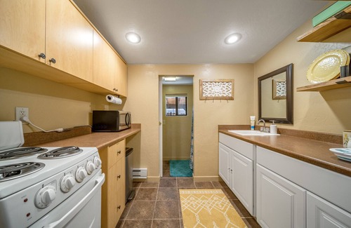 • Quaint, fully stocked kitchen (yes, you can make pancakes here)