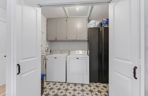 The fully stocked kitchen has everything you need to prepare home-cooked meals, from coffee in the morning to dinners shared around the table. For those planning a longer stay, the convenience of a washer and dryer means you can pack light and feel right at home.