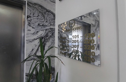 When you come to Hawthorns apartments come inside into the main reception area and on the right hand side near the counter you will find the master key lock open that with the code given to you and you will find a fob which you then take to the flat and that will allow you access into the flat.