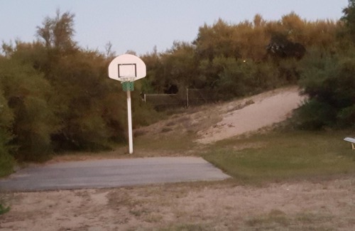 The residence is located in a shaded park with a boules court, a basketball court and a ping pong table
