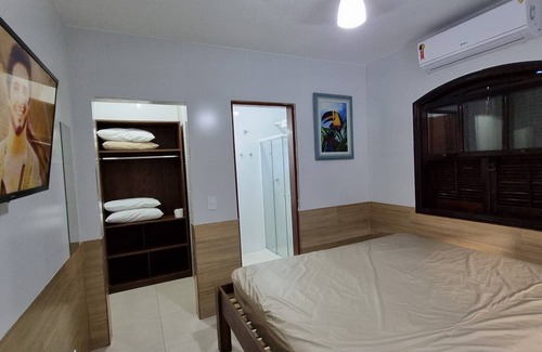 Located in São Sebastião, this 4-bedroom, 4-bathroom guesthouse lets you experience it all. Fans of nature and the outdoors will love being 11 minutes by foot from Barra do Una Beach and 7 minutes from Praia de Una. With the property's convenient covered onsite parking, you'll be ready to make the quick 12-minute drive to Juquehy Beach or the 10-minute drive to Jureia Beach.