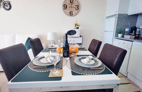 Property comprises: bedroom with double bed, living room with kitchenette, 1 sofa bed (for 2 people), air conditioning throughout the apartment (cold and hot), bathroom, cable TV and WI-FI, balcony with table, chairs, to enjoy your holidays.