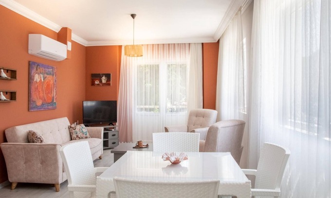 Discover the ultimate beachside retreat in our fully-furnished flat in Didim, Aydın. A stone's throw from the beach, our space invites you to unwind with stunning sea and nature vistas from your terrace. Whether you're seeking a short-term or vacation rental in Didim, you'll appreciate the expansive rooms, contemporary appliances, and a kitchen equipped for any culinary adventure. Book now for an unforgettable experience!