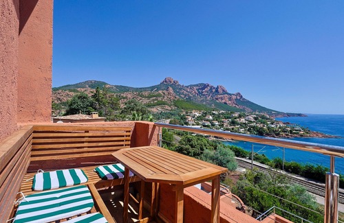 The flat is located on the most beautiful stretch of coastline on the entire Côte d'Azur. The view of the red rocks of the Massif de l'Estérel, the offshore islands of Cannes and the unrestricted view of the sea is magical.