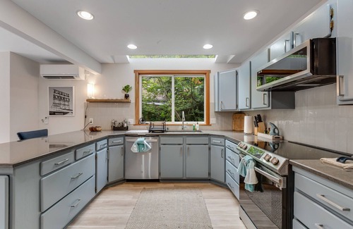 Welcome to our waterfront oasis on Bainbridge Island! Nestled on the picturesque Fletcher Bay, this home boasts a private dock, perfect for easy access to water activities. Step onto the deck, complete with a table and chairs, and let your worries melt away as you take in the breathtaking views of the bay. The interior of the home is equally inviting, with a comfortable ambiance that will make you feel right at home. With two bedrooms equipped with desks, this rental is ideal for remote work or studying in a peaceful environment. For those seeking relaxation, the yoga zone room provides a dedicated space to find your inner zen and unwind. Forget laundry worries with two sets of washers and dryers available.