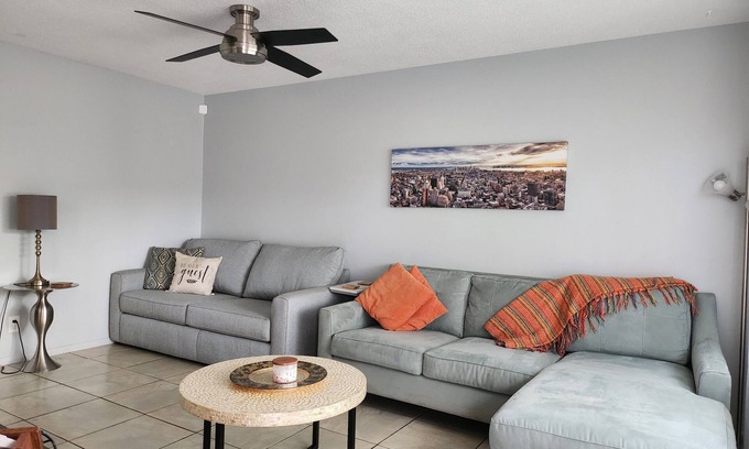 - Stylish Condo, Walk to Dining, 5 Min to Beach