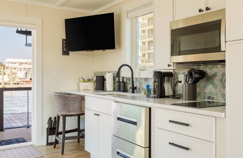 Docked at the iconic Virginia Beach Fishing Center in historic Rudee Inlet—the celebrated birthplace of East Coast billfishing—this floating retreat provides panoramic views, stylish interiors, and a private rooftop deck ideal for savoring breathtaking sunrises and sunsets.