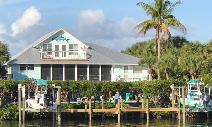 Johnson’s Tipsy Tarpon house is located on a Palm Island (AKA Don Pedro Island). This home is a top notch Key West Style Stilt Home. Palm Island is one of the last existing paradises. It is a bridgeless Island conveniently accessible by a short 3 minute car ferry ride. So pack up and come visit us!