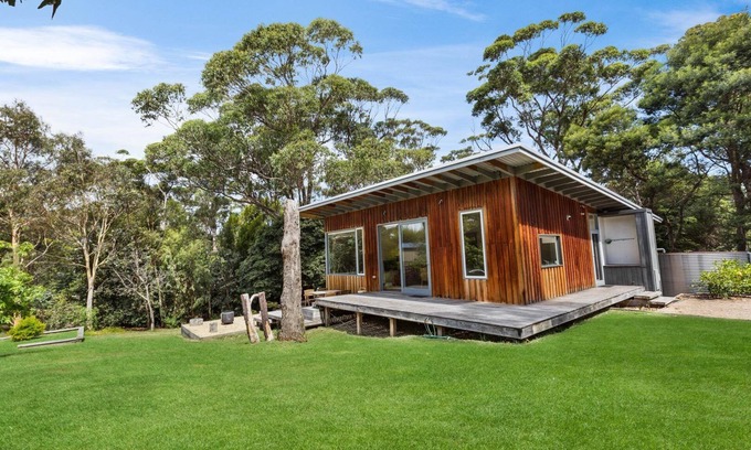 Featuring 2 bedrooms and 1 bathroom upstairs, an additional bedroom and bathroom downstairs, a fully equipped kitchen, WiFi, a large outdoor area with a picnic table, and a fabulous large grassy area, The living area opens to the north onto a series of sunny timber decks which step down to barbeque and fire pit areas (BYO Wood). Flounder is perfectly equipped for your next private getaway.