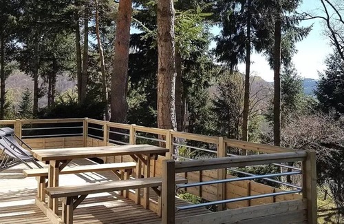 Residence: Flower Camping Le Belvédère, 4 stars, South Cantal, 5 km from Chaudes-aigues, thermal village with its center Caleden, for cures. Camping of medium mountains at 700 m altitude, on the south side of the mountain, typology in terraces. Camping pitch in the countryside, scenery and tranquility in the greenery ... Rent tent, chalet and mobile home, from the range _Comfort_ to the range _Premium_ , sumptuous accommodation with TV.Indoor and heated swimming pool and paddling pool. Snack, bar, restaurant, on-site grocery store, bread and pastries manufacturing and sale, children's club and theme parties. Outdoor activities nearby (canoeing, hiking, climbing, canyoning, via ferrata, via corda, rafting...).
