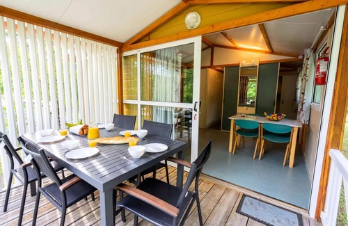 Flower Camping Le Clot du Jay * - Standard chalet 25m2 2 bedrooms + Terrace 5 persons | Ski Chalet in CLAMENSANE