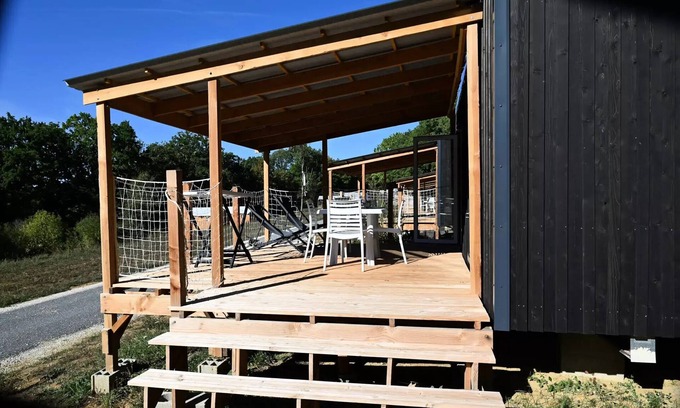 Flower Camping Le Lac aux Birds * - Homeflower PREMIUM with TV, dishwasher and air conditioning 29 m2 (2 bedrooms) 4 persons is located in Martiel. Flower Camping Le Lac aux Birds * - Homeflower PREMIUM with TV, dishwasher and air conditioning 29 m2 (2 bedrooms) 4 persons provides accommodation, featuring Security/Safety, Barbecue/Outdoor Cooking, Internet, among other amenities. This House features Security/Safety, Barbecue/Outdoor Cooking, Internet, to make your stay a comfortable one.