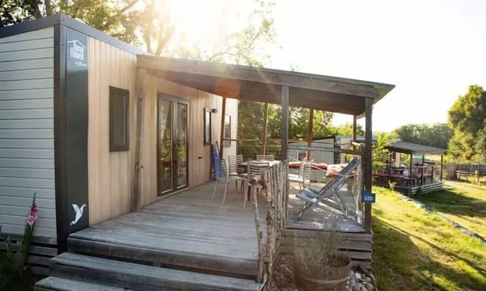 Details: Wi-Fi access : free on the campsite Playground for children : with inflatable structure Pets allowed : 5€/day - 1 animal per rental - up-to-date vaccination record - kept on a leash - category 1 and 2 dogs prohibited Barbecue : collective Deposit (in supplement) : 160€/accommodation and 70€/household - to be paid on site Lake / river distance : 6000 m Grocery store : emergency grocery store - delivery of bread and pastries to order the day before Baby Kit : 5€/day - upon reservation and subject to availability - to be paid on site Laundromat : extra - prices on site Bedding : 14€/single bed and 16€/double bed - upon reservation and subject to availability - to be paid on site Final cleaning : 70€/accommodation - optional - to be paid on site Mini golf : extra - prices on site Water park : outdoor swimming pool - slides - paddling pool bowling Swimming pool : exterior Possibility of bike rental : extra - prices on site Close trade : 500m Restaurant : with bar Tourist tax (surcharge) : according to current rate - to be paid on site Multisports ground : volleyball Number of stars : 4 Near airport : Toulouse-Blagnac Airport #TLS (102.1 km) Sports animations Sin Ping Pong Air conditioner Dishwasher Number of bedrooms : 3 Surface (m²) : 31 Television Cooked Microwave oven Number of bathroom : 1 Number of toilets : 1 Terrace Barbecue