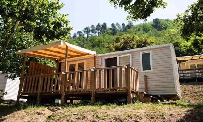 Accommodation: This mobile home of 30m2 offers you an equipped kitchen with a bright living room, 2 bedrooms (one parent, the second bedroom is equipped for 2 people - 2 twin beds or bunk according to model) a beautiful wooden covered terrace will protect you from the sun Ardèchois.
