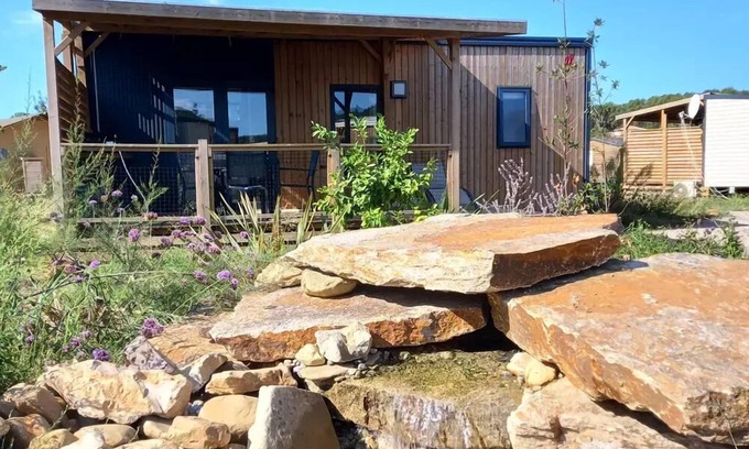 Flower Camping Olivigne * - Mobile home Premium 29m2 2 bedrooms + terrace 21m2 + TV + LV + Clim + plancha 4 people | House in BIZE MINERVOIS