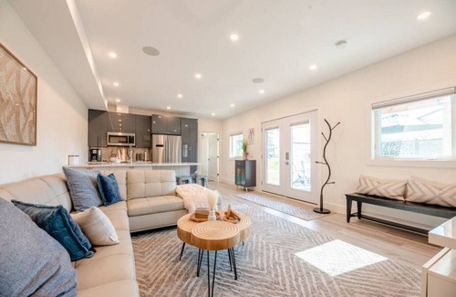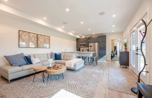 This newly built home offers 2 comfortable and stylish queen bedrooms on opposite ends of the home. Each bedroom has access to a full bathroom that includes shampoo, conditioner, body wash and plush towels. Washer and dryer are available for you to use. Relax in the open floor plan living space with smart tv & board games; Kitchen is equipped with high end range, microwave, coffee pot (& tea and coffee!), and all of the essentials you need to enjoy your home away from home.
