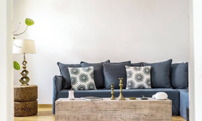 The fully equipped kitchen provides everything you need to prepare delicious meals inspired by the fresh local ingredients Folegandros has to offer. The experience is completed by a stylish bathroom with a bathtub, a rare find on the island, offering moments of relaxation and luxury.
