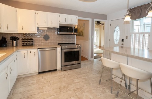 As you venture inside, our fully-equipped kitchen boasts an array of appliances including an air fryer, waffle maker, and griddle. An assortment of pots, pans, and culinary essentials awaits, allowing you to craft feasts with ease.
