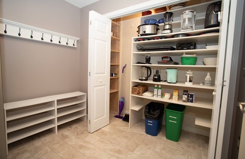 The garage is your go-to for outdoor competition, housing yard games like Kan Jam and Spike Ball that can be used anywhere on the property.