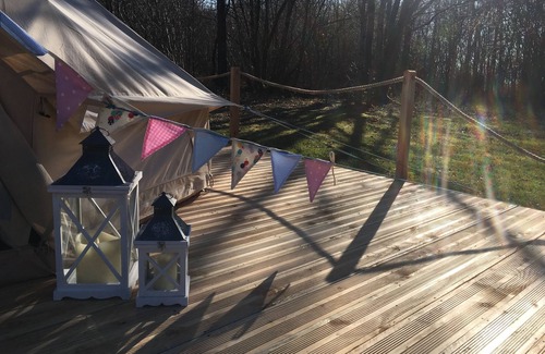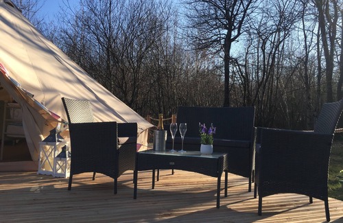 Outside is a private terrace area with garden lounge furniture as well as a picnic bench for eating at. The glamping is in a private and secluded area of the site where guests are not over looking, apart from maybe the surrounding wildlife.