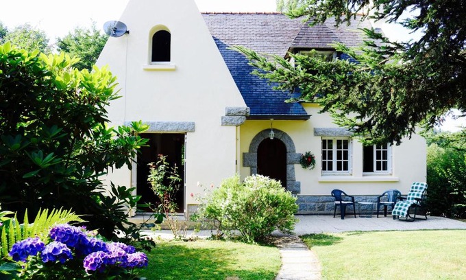 Fontaine Blanche River View, Large Patio & Garden in Central Brittany with Starlink WiFi is a recently renovated vacation home in Treffrin where guests can make the most of the free bikes and garden. This property offers access to a patio, darts, free private parking, and free Wifi. The property provides barbecue facilities and outdoor furniture. Offering a terrace and garden views, the spacious vacation home includes 3 bedrooms, 2 living rooms, satellite flat-screen TV, an equipped kitchen, and 3 bathrooms with a walk-in shower and a bidet. Guests can unwind by the fireplace on a cold day or enjoy playing some games on the Nintendo Wii. The vacation home offers bed linen, towels, and laundry service. For guests with children, the vacation home offers an indoor play area, outdoor play equipment, and a baby safety gate. If you'd like to discover the area, cycling, hiking, and walking tours are possible in the surroundings. Pleyben Parish Close is 26 miles from Fontaine Blanche River View, Large Patio & Garden in Central Brittany with Starlink WiFi, while Lampaul-Guimiliau Parish Close is 30 miles away. Lorient South Brittany Airport is 47 miles from the property.