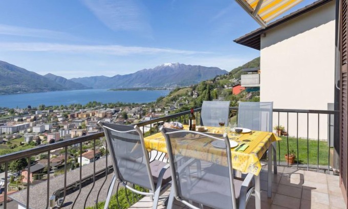 "Fontanella Amazingview", 3-room house 60 m2. Comfortable and cosy furnishings: living room with dining table and TV (flat screen). Exit to the balcony. 2 rooms, each room with 2 beds (90 cm, length 200 cm). Small kitchen (oven, toaster, kettle, grill, electric coffee machine, Capsules for coffee machine (Nespresso mitbringen) extra, fondue Set (cheese)). Shower/WC. Electric heating. Balcony. Deck chairs (2). Very beautiful panoramic view of the lake, the mountains and the countryside. Facilities: iron, children's high chair, baby cot for up to 2 year olds (extra), hair dryer. Internet (WiFi, free). Parking at the house. Please note: non-smokers only. Maximum 1 pet/ dog allowed. NL-00005244