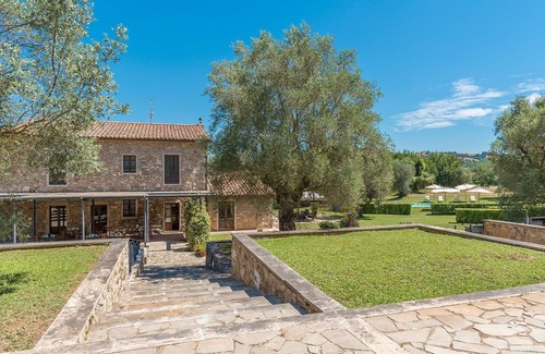 The park extends for about 2 hectares, is partially fenced and has a well-kept garden which surrounds the entire house, consisting partly of lawn and partly of small artificial terraces which create a lively and pleasing aspect. Of particular beauty is the wall fountain located in front of the portico, enriched by numerous flower vases, making it the ideal place in which to relax with a good book. On one side of the lawn is the olive grove and, on the other, the woods where guests can immerse themselves completely in uncontaminated nature.Please notice that photos are taken in spring, therefore flower blossoming, and the colours of the gardens' grass could be different at the moment of your arrival at the villa.