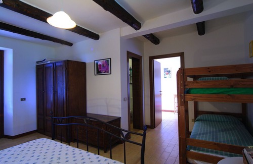 At Fonte Pecorale you will find peace and relaxation. The approximately 40 square meter apartment has a spacious living and dining area with an integrated kitchen. The bathroom is equipped with a large shower and bidet. The bedroom is furnished with a double bed and a bunk bed, as well as a spacious closet. There is also a cozy seating area. The apartment has a separate entrance and a terrace in front and behind the house.