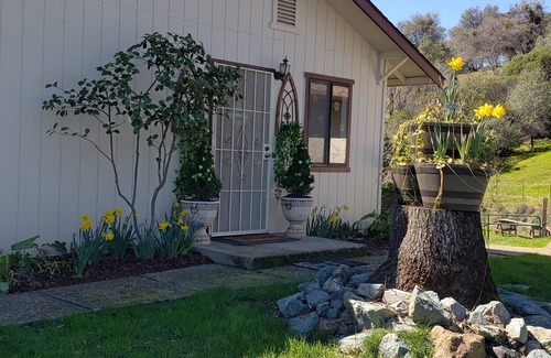 The perfect place to getaway or to “work at home” away from home in the foothills of the Sierra Nevada Mountains, minutes away from Jackson and Sutter Creek. You can relax and enjoy the beautiful views of the valley in your own 1150 sq. foot 2-bedroom guest house complete with a full kitchen, living room with a wood stove fireplace, smart TV, WiFi, desk, private bath and deck with a grill. Relax by the private pool during the summer months. You will be surrounded by nature, peace & quiet. We have your health and well-being in mind at our mountain retreat cottage. Our luxurious, ultra-comfortable beds meet rigorous standards that minimize off-gassing. They are made without harmful chemicals such as formaldehyde, heavy metal and certain flame retardants. All the linens and towels are all certified organic cotton.