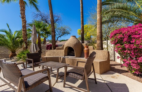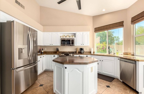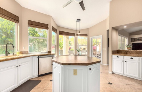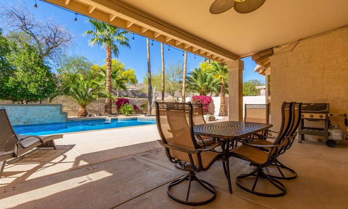 Come. Relax. Enjoy. This stunning home is bright and spacious with everything you need. You'll love the large kitchen and living space with sliding doors that open to the patio. The backyard offers dining space, sparkling pool, and our favorite part - the outdoor fireplace! Near hiking trails, shopping, restaurants. Only 20 minutes from the airport. Our oasis is waiting for you!
