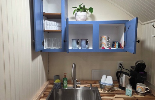 Nestled in the foothills of on the west side of Littleton, this delightful sunny "BASEMENT" studio is a charming retreat for our guests. The cozy space features 1 queen bed in the bedroom and a living room with a comfy futon that pulls down for a full bed. With amenities like Wi-Fi, kitchenette, 1.5 bathrooms, and washing machine (for an additional fee), you will have everything you need for an excellent stay. The bathroom offers a refreshing shower and additional items for convenience.