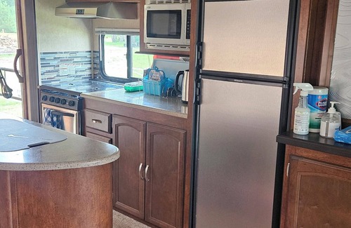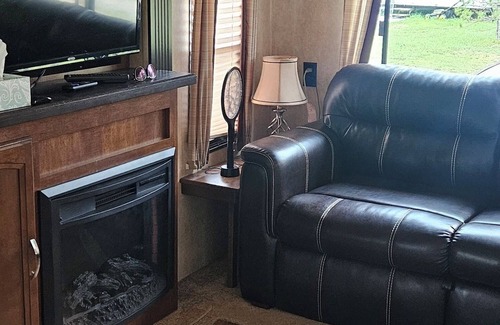 This 2-bedroom campground in Necedah is perfect for your escape. It accommodate 6 people comfortably. The cozy king bed and sofa bed offer a comfortable night's sleep. Enjoy the convenience of WiFi, AC, and a washing machine during your stay. The bathroom features a refreshing shower. We look forward to hosting you.