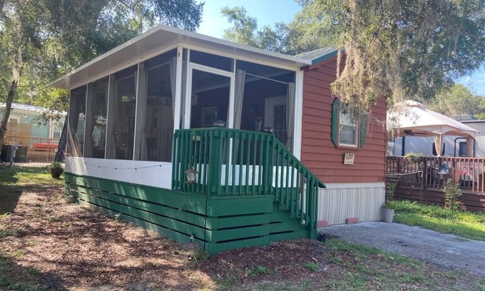 "For Fox Sake" is ideally situated near several attractions that showcase the area's natural beauty. The Salt Springs Recreational Area, Silver Glen, and Alexander Springs offer opportunities for hiking, swimming, and exploring pristine natural springs. Adventure seekers will be thrilled to discover the nationally famous UTV trails of the Ocala National Forest nearby, perfect for off-road adventures. *Upon arrival there is a non-negotiable $20 gate access fee that covers your access to boat ramp/dock, lake front swim area, expansive dog park as well as any event that might be going on in the community during your stay. If you bring a boat or any type of trailer, there is a $20 fee that covers trailer parking during your entire stay. We apologize these are not our fees, these fees are out of our hands. there is also a $50 pet fee, we accept dogs only and it is per dog, MAX 2 dogs per stay.