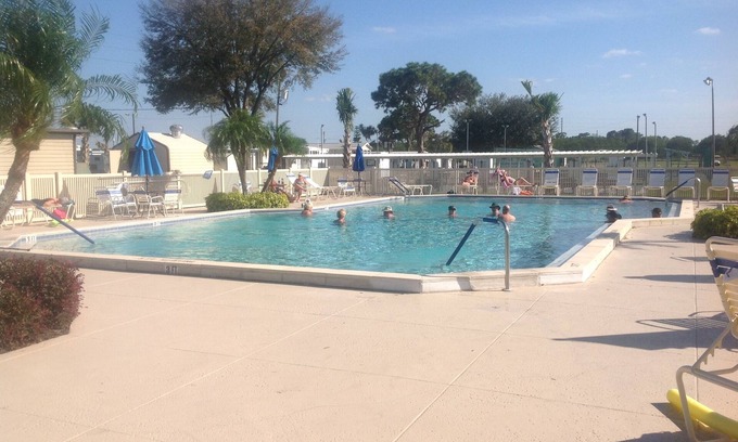 2 heated pools and jacuzzis, pickle ball courts, shuttle boards, something happenings in park, close to golf course and shopping, we are a pet friendly very friendly and clean park. Please call me on any other questions. We are a1 hour and 15 min south of Orlando and 1 hour and 15 minutes from either coast.