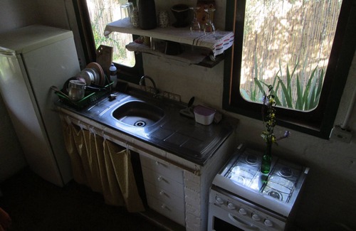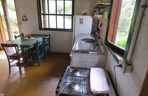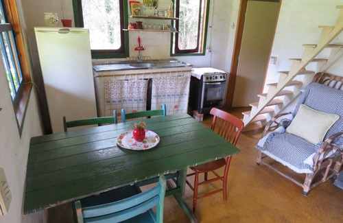 Sunny cottage, large windows, beautiful view, suite with double bed, large mezzanine, balcony, fireplace, living room / kitchenette completalocalizado in beautiful site, the river, Pinheiros, native forest, very quiet; Dágua mirrors with Trout, beautiful garden. Located 07 km from the center, easy access, a departure point for trails that lead to waterfalls and mountain climbing sites, fishing. A place of great tranquility, also perfect for Montain Bike.