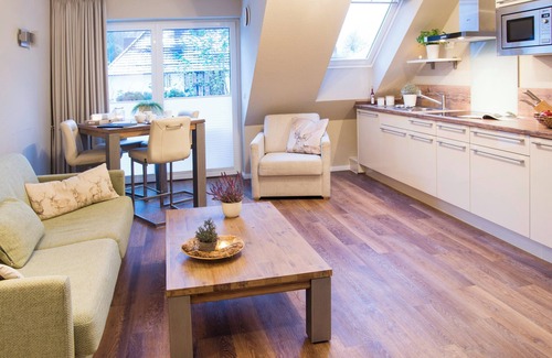 The apartment 'Fördewald' is one of four elegant and high quality equipped apartments in Strandquartier Solitüde. Each apartment takes up a different theme and its design, furnishings and equipment make a maritime reference to the immediate beach Solitüde ago.