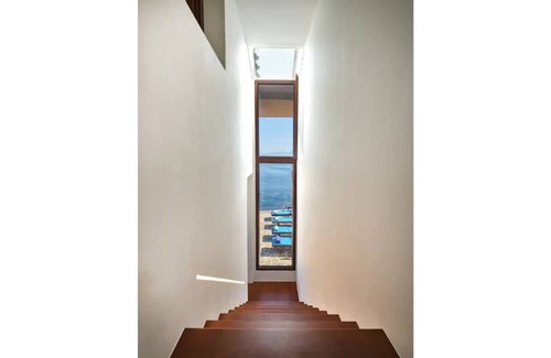 Our beautiful Villa is located in a hidden heaven mounted rock, which is covered by the sea as far as the human eye can see. The rough, authentic beauty of nature is beautifully linked to the superior design and luxury of the building. Our villa will be a pleasant surprise with its minimal design, in absolute respect to the simple lines of nature, with a view to the sun emerging from the mountains of Evia. A small staircase leads to a private rock beach with calming crystal clear waters.