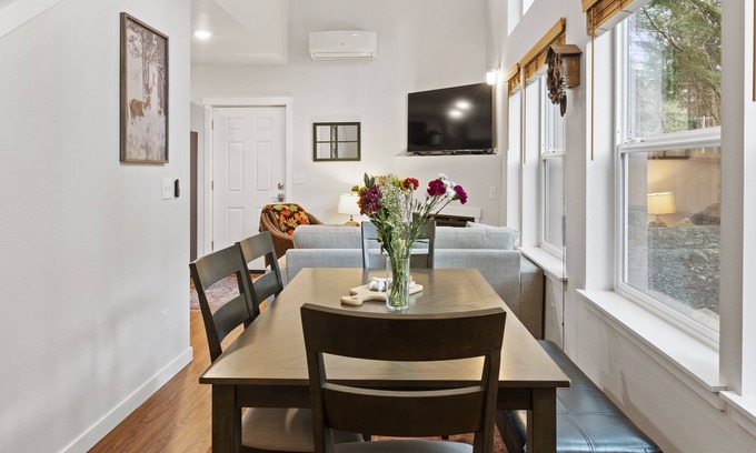 Experience the charm of our unique cabin featuring exposed beams, cabin decor, luxurious jetted bath tubs, and new Hot Spring hot tub. Perfect for couples, friends and families, enjoy limitless entertainment options with a selection of board games, toys, and an extensive DVD collection. The cabin provides swift access to the stunning Mt. Rainier National Park and is just a short five minute drive from Ashford's vibrant art galleries and delightful eateries. Book your Mt. Rainier adventure today!