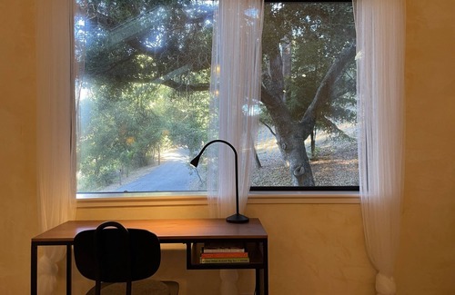 An exquisite two-story home nestled into a private redwood and oak glen, the Forest Cottage is your own piece of paradise. Established in the 1930’s as the original cottage on Heart Circle Mountain, the Forest Cottage has been lovingly remodeled, built out of the finest materials including Venetian plaster walls, tumbled marble, and art glass lighting. The retreat is meticulously cleaned with non-toxic cleaners, is pet-dander free, and features sparkling white linens dried in the Big Sur sun.