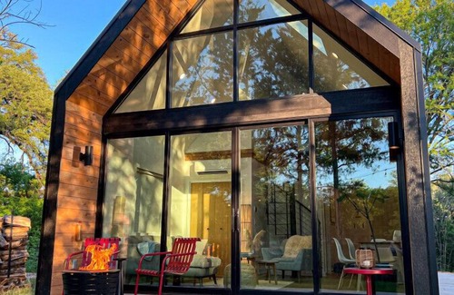 Situated at the edge of the woods, Forests Edge is the perfect getaway for the discerning traveler. Though it is nestled carefully in nature, this modern cabin lacks no comforts or convenience. It has one queen bed upstairs, one full bed downstairs and one bathroom. Complete with a micro chef’s kitchen with luxury appliances, top-notch mid-century furnishings and fine Scandinavian-inspired finishes throughout, this 650 sq. ft. cabin offers a one-of-a-kind experience.
