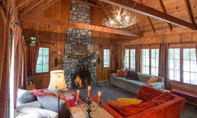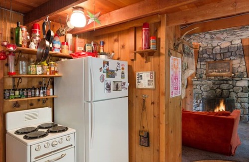 Wake up in the forest in a cozy 1939 Vintage Cabin with the sound of running water, nestled between beautiful old growth trees. High wood beamed ceilings & a spectacular rock fireplace transport you to another time. You will truly feel you have escaped to a piece of mountain heaven. Wrap around deck with hot tub, next to the creek, will guarantee relaxation.