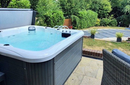 Amenities: Gas central heating. Electric oven, gas hob, microwave, fridge/freezer, washer, dryer and dishwasher. Smart TV, WiFi, Sky Sports Football, Sky Movies, Netflix, Disney, Amazon Video & Google Play. Rear enclosed garden with decking, furniture, hot tub and heated swimming pool. Sorry, no smoking inside the house. Off-road parking for 4 cars. Type 2 EV charging cable available. Woodburning stove includes starter pack of kindling and fuel. Shop 0.4 miles, pub 0.2 miles (<1 mile away). One small dogs welcome. The swimming pool has a protective cover, but please ensure children are always supervised. Please note: The pool is only available between April and September