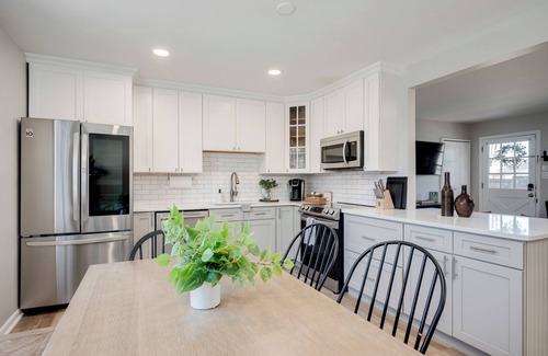 Two King rooms, Two Queen bedrooms. One main full bathroom and one half ensuite off King room. Stocked kitchen,W/D, Keyless lock. Smart TV, WiFi. Indoor/Outdoor dining. No indoor smoking. Plenty of designated onsite parking.