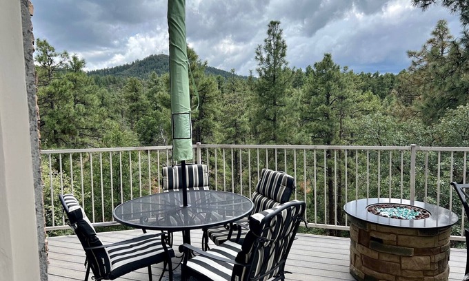 Escape away to our Castle in the Pines. Let your worries melt away whilst relaxing on the balcony with views of the pines and mountains. Surrounded by nature and wildlife, at 7700 elevation, but less than 20 minutes to the heart of downtown Prescott/Whiskey Row.