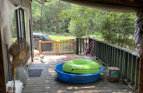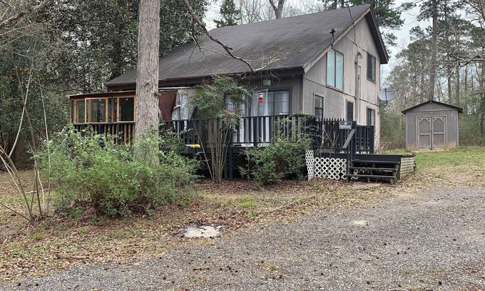 Beautiful house in the forest with a small view of the lake, large porch with a small living room in it. Great place to relax, nice and quiet, no neighbours nearby. 20 min away from Woodville Tx, 10 min away from the nearest store.