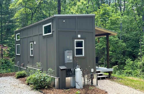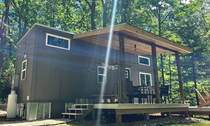 This well appointed tiny home has everything you need - porch and decks with plenty of outdoor seating, 2 lofts, one with a queen mattress and one with a single futon as well as a small living and dining area and kitchen appliances and equipment.