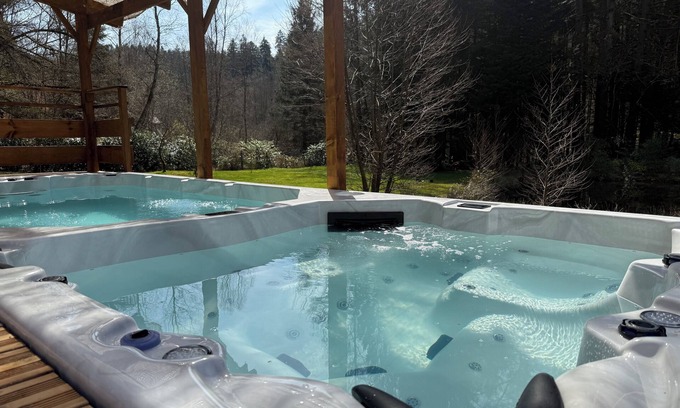 Forest setting with swim spa is located in Jeanmenil. Forest setting with swim spa provides accommodation, featuring Security/Safety, Bedding/Linens, Wellness Facilities, among other amenities. This Villa features Security/Safety, Bedding/Linens, Wellness Facilities, to make your stay a comfortable one.